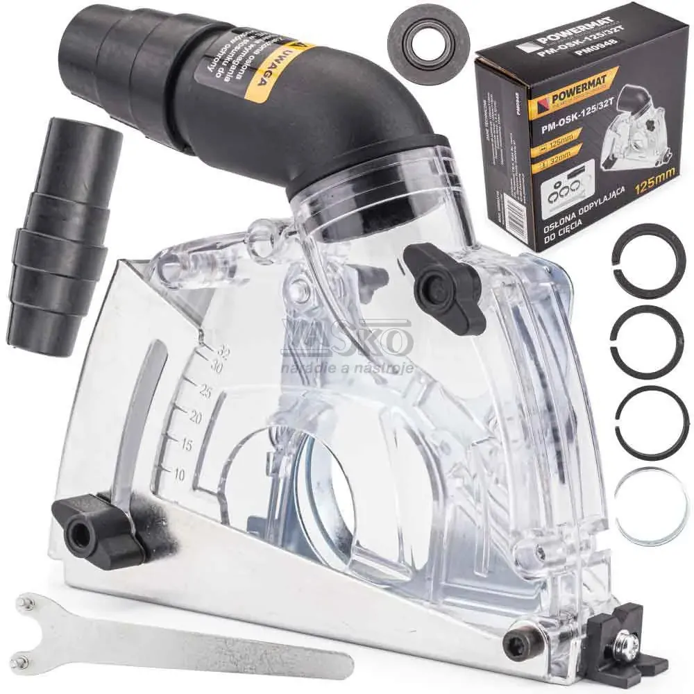 Nadstavec na odsávanie so sacou dýzou pre uhlové brúsky 115 a 125 mm. Kryt je pripevnený k prírube vretena namiesto štandardného kovového krytu. Kryt umožňuje odsávanie prachu pri rezaní. Zabezpečuje presnú prácu vďaka praktickému nastaveniu hĺbky rezu v rozsahu od 5 do 32 mm. Nízka hmotnosť zaručuje pohodlnú prácu.