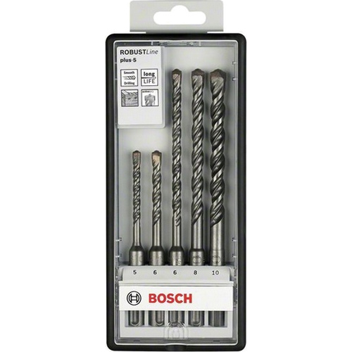 Súprava vrtákov Robust Line Bosch SDS-plus-5 s dobrou životnosťou a odolnosťou pri použití do betónu, armovaného betónu a muriva.